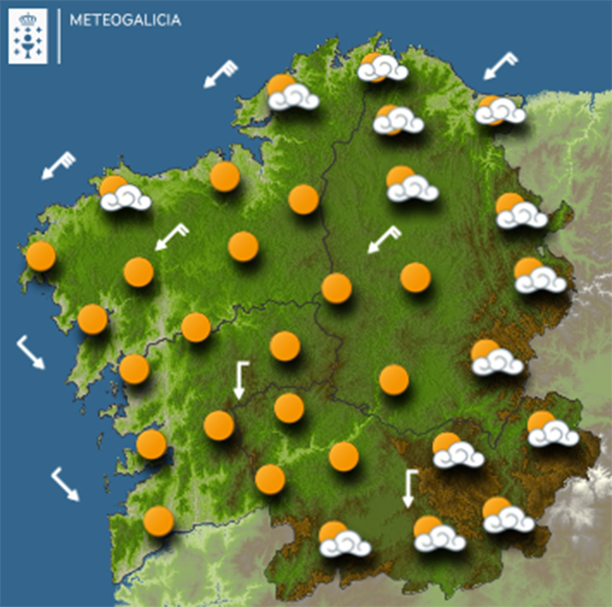 La AEMET alerta de temperaturas máximas próximas a los 40 grados en zonas de Pontevedra e Ourense, por lo que pide a la población hidratarse y evitar zonas muy ...