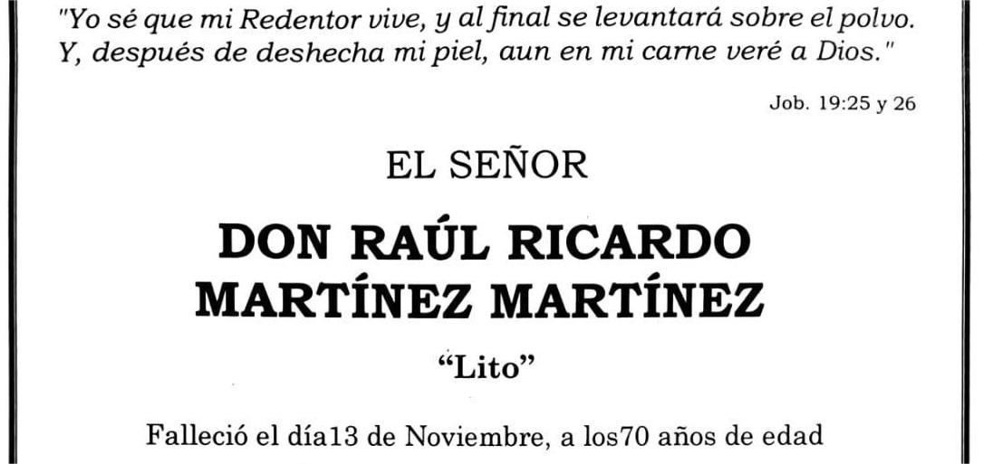 Fallece Don RAÚL RICARDO MARTÍNEZ MARTÍNEZ “Lito”, a los 70 años de edad