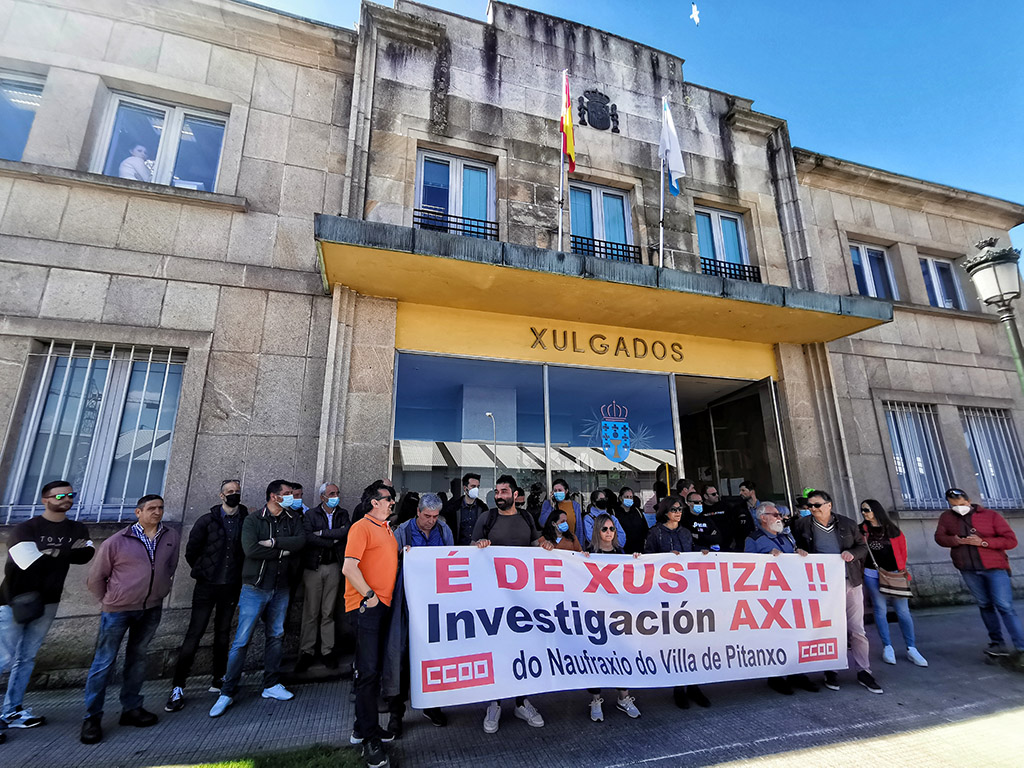 Un nutrido grupo de personas se reunió ayer ante el edificio de los Juzgados de Marín, convocados por CC.OO., para reclamar una investigación ágil en el caso del ...