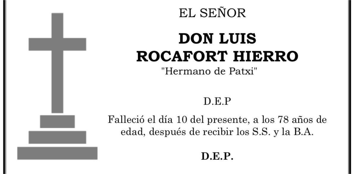 La funeraria LA FE comunica el fallecimiento de Don LUIS ROCAFORT DEL HIERRO cuyos restos mortales permanecerán en el tanatorio SAN MARCOS de ...