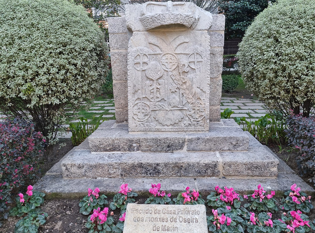 En los jardines del ayuntamiento se encuentra ubicado uno de los tesoros históricos de Marín que no es otra cosa que el escudo de la Orden Cisterciense que figuraba ...