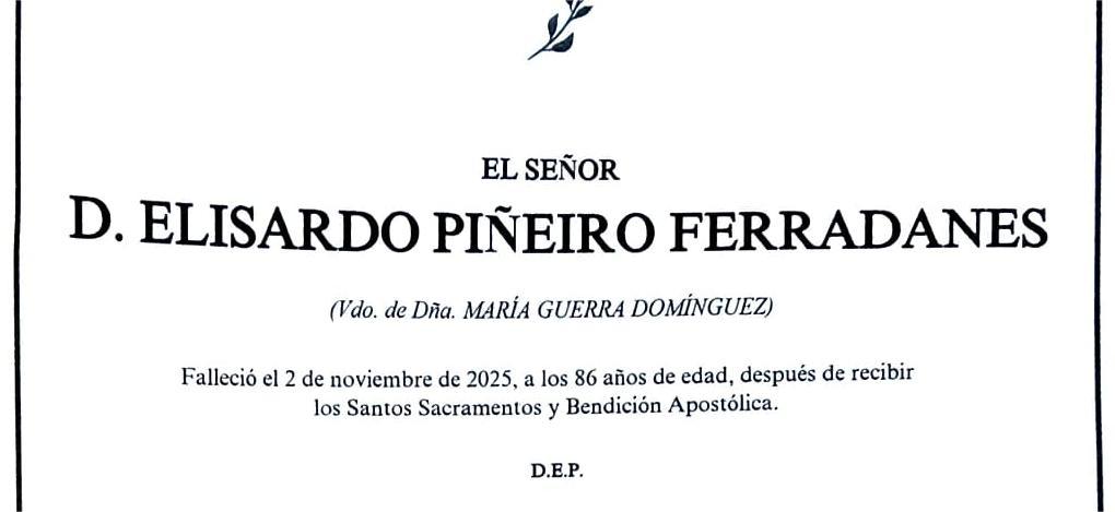 La funeraria SAN MARCOS comunica el fallecimiento, ayer día 2 de noviembre, de Don ELISARDO PIÑEIRO FERRADANES cuyos restos mortales ...