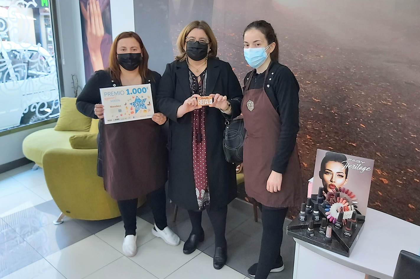 Ayer se procedió a la entrega del premio de 1.000 euros que recayó en una cliente de la Peluquería Loli Seara, Mari Luz Román a la que le fue entregado el mismo en ...