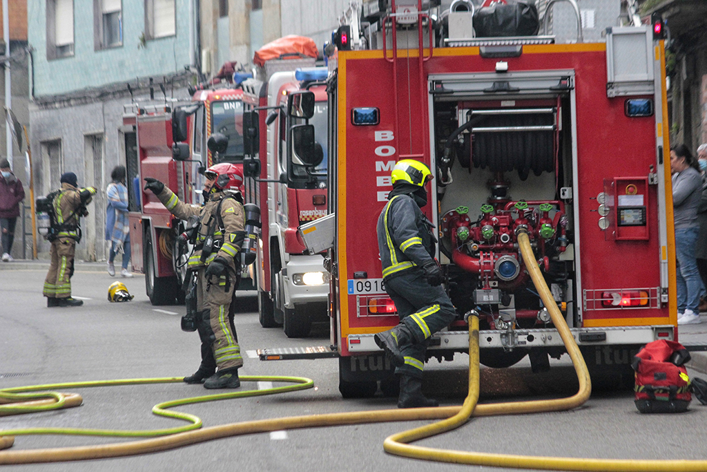 Bomberos de Pontevedra y Morrazo se afanan por evitar la expansión del fuego hacia la zona trasera, con muchas viviendas de estructura de madera. La carretera de ...