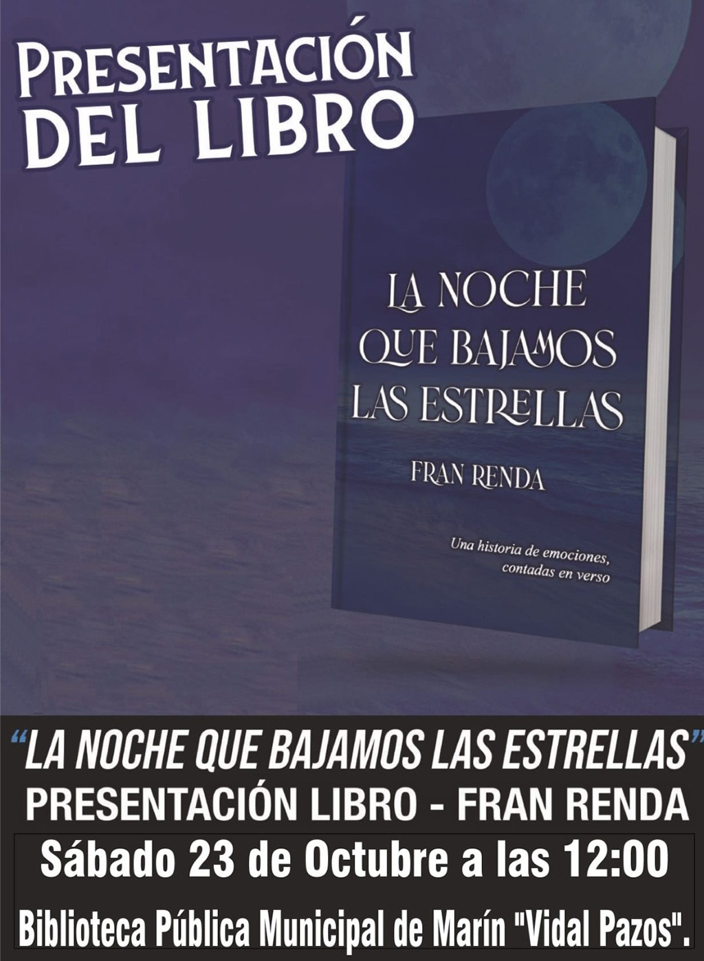 La Noche que bajamos las estrellas es el título de u libro que este mediodía a las doce, se presenta en la Biblioteca Pública Vidal Pazos, autoedición de su autor, ...