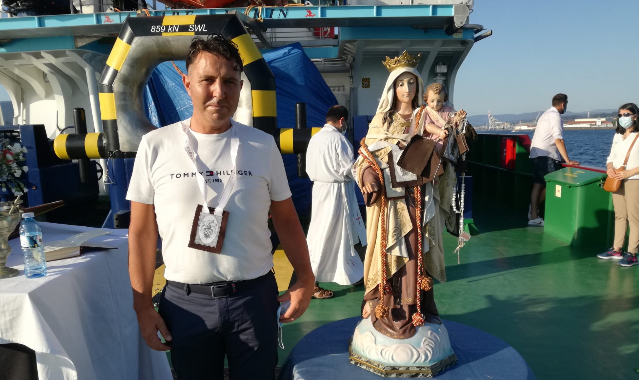 Ayer participó en la procesión con la imagen que presidirá su barco “Virgen de la Consolación” y que fue bendecida por el cura párroco de Marín