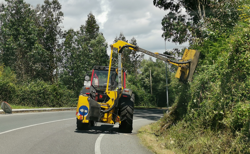 Máquinas desbrozadoras trabajan desde hace dos días en el desbroce y limpieza de las orillas de la carretera PO551. Los trabajos comenzaron en la vecina población de Cangas contratados por la ...