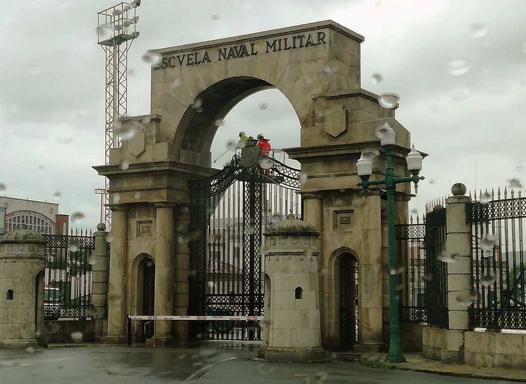 La zona con más acumulación de agua fue el entorno de la caseta de turismo y la entrada de la Escuela Naval.