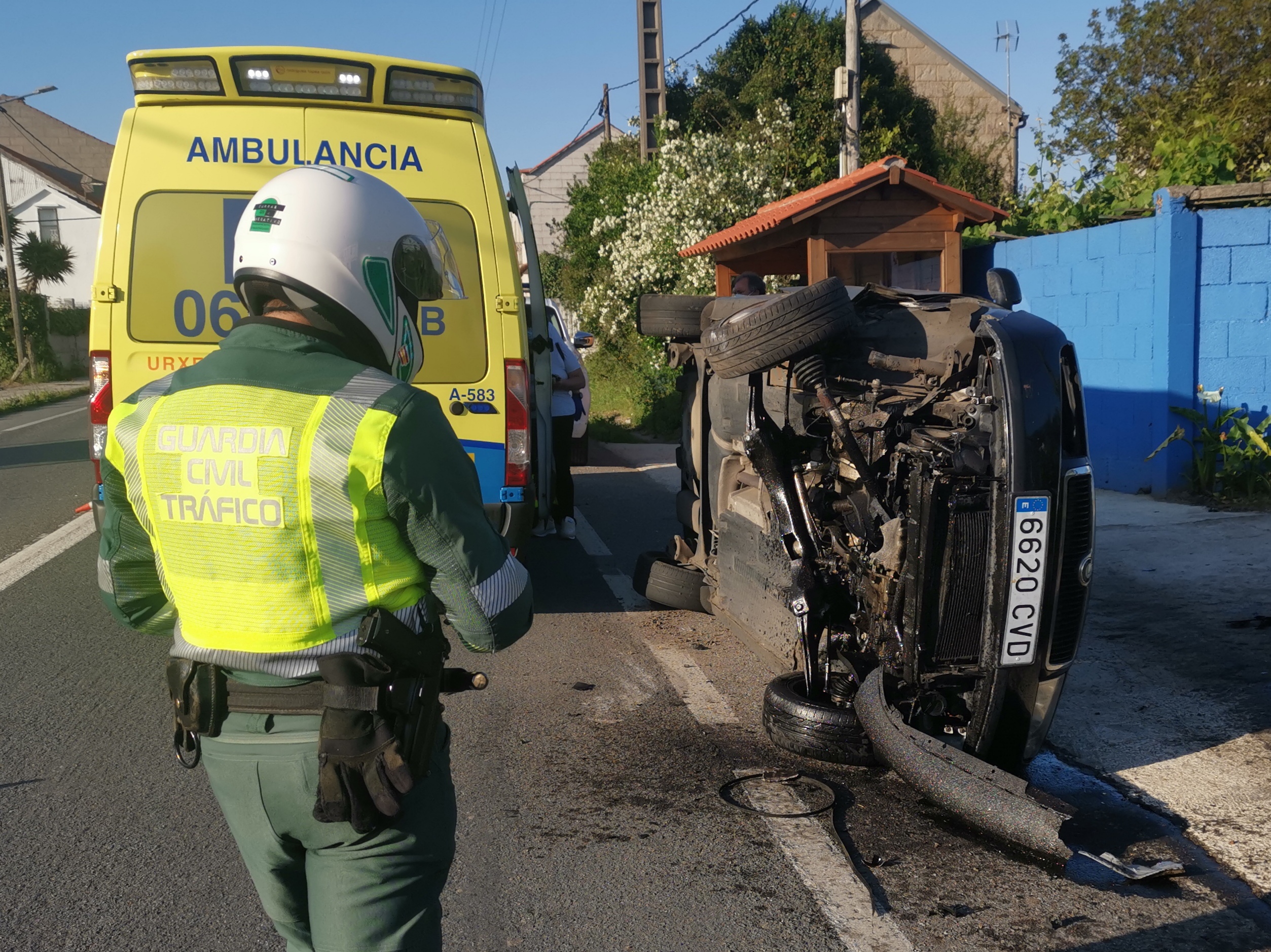 Un turismo que viajaba hacia Marín quedó semivolcado en el margen de la carretera